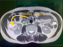 Şekil: Sağ böbrekten kaynaklanan bir böbrek tümörü