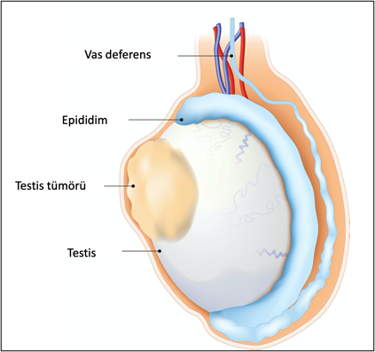 Testis kanseri testisin içinde kontrolsüz hücre çoğalmasıdır (Şekil 1). Bu kontrolsüz çoğalma tüm testisi ve etraf dokuları işgal edebilir veya uzak yerlere sıçrayabilir, yani metastaz yapabilir. Testis kanseri diğer kanser türlerine göre nadir görülür ve kabaca görülme sıklığı 250 erkekte 1’dir. Ortalama görülme yaşı 33’tür. Testis kanseri gelişimi için riskli durumlar daha önceden inmemiş testis hikayesinin bulunması veya ailede testis kanseri hikayesinin bulunmasıdır.